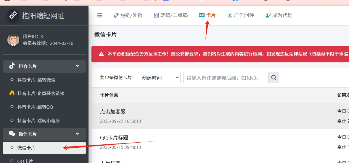 第一步:到【网址缩短】卡片模块,选择微信卡片