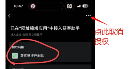 2. 请确认该条获客链接是否已经删除,或者授权已经取消。
