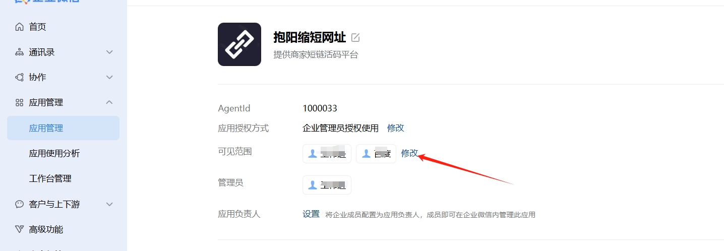 1. 用户加企微时提示,该链接已授权在“网址缩短应用”中使用,无法在其他场景使用
